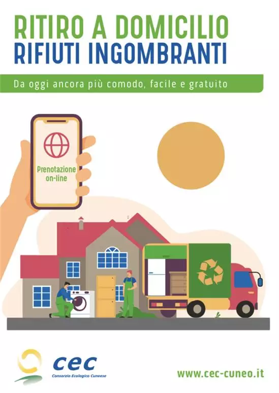 E’ attivo 24 ore su 24 il nuovo servizio di prenotazione on-line per il ritiro GRATUITO dei rifiuti ingombranti a domicilio, sul sito web del Consorzio Ecologico Cuneese (www.cec-cuneo.it).
