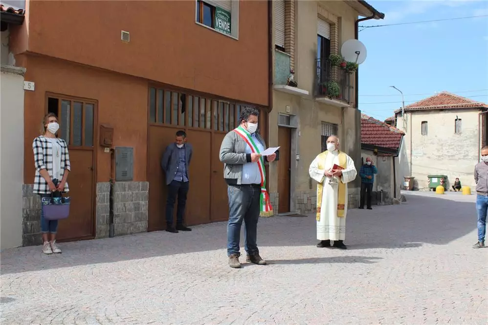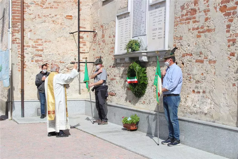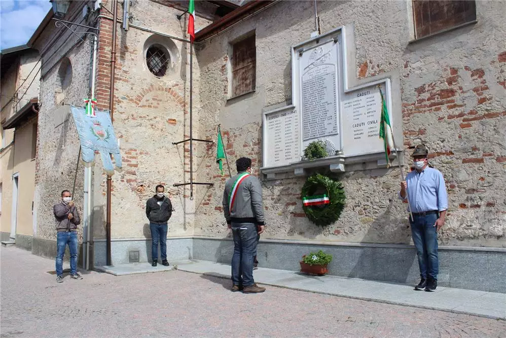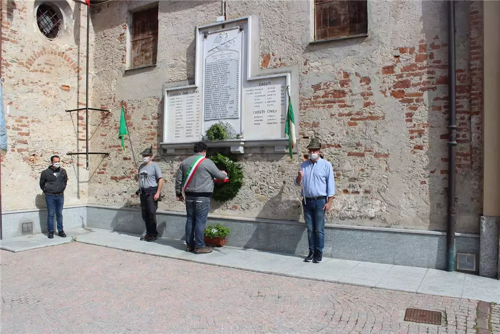 Descrizione Il Sindaco Alessandro Dacomo in rappresentanza di tutta la cittadinanza rende onore ai caduti per le celebrazioni del 75° anniversario della liberazione.